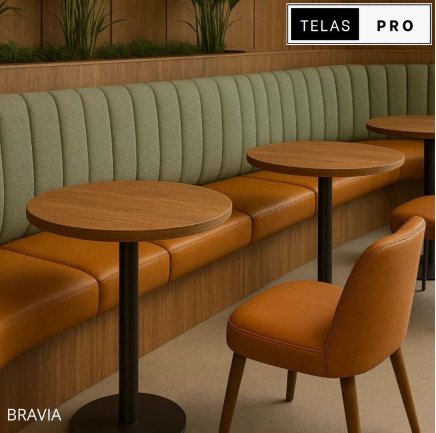 La Línea Bravia representa la excelencia en telas vinílicas profesionales, especialmente diseñada para hoteles, casinos y restaurantes que buscan combinar elegancia, durabilidad y funcionalidad. Con su distintivo acabado tipo piel, estas telas ofrecen una textura sofisticada que eleva cualquier espacio comercial.